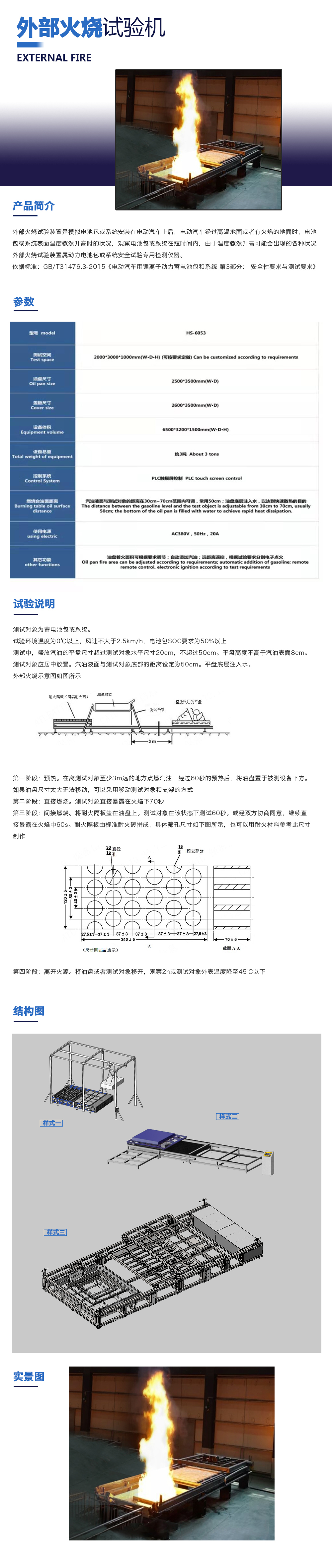 產(chǎn)品型號:JQ-8202-2500 品牌:劍 喬 用途:外部火燒試驗裝置是模擬電池包或系統(tǒng)安裝在電動汽車上后,電動汽車經(jīng)過高溫地面或者有火焰的地面時,電池包或系統(tǒng)表面溫度驟然升高時的狀況,觀察電池包或系統(tǒng)在短時間內(nèi),由咨詢熱線:13829135130