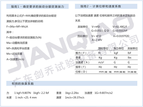 注:圖為振動(dòng)試驗(yàn)臺(tái)選型換算公式
